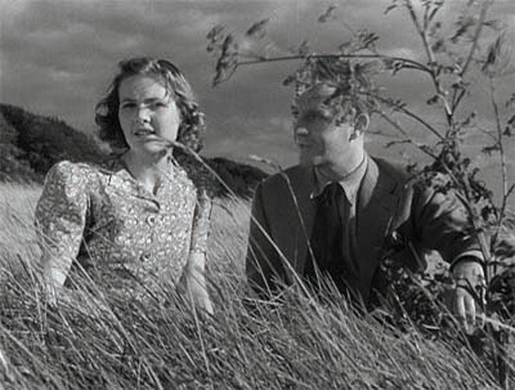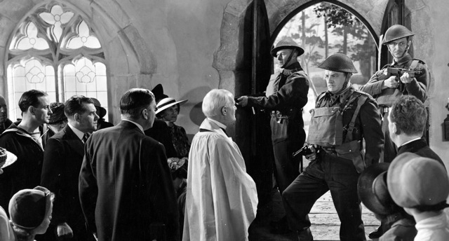 Moreover, the sanctity of the ‘home’ was destroyed during the war, as the Home Front came under attack through air-raids and invasion threats. The topical war films explore this displacement of women and the vulnerability of the home: in Went the Day Well? (screenplay Graham Greene, dir. Alberto Cavalcanti, 1942) the home is infiltrated by German soldiers disguised as British ones. Likewise, in A Canterbury Tale, the heroine Alison is essentially a pilgrim; without a stable home. Her fiancé is also presumed dead, “so a promise of a future home is denied her”[5]. In both films, though, the home is ultimately saved: the women use domestic objects to blockade the village manor house against the Germans in Went the Day Well?, while the miracle awaiting Alison in Canterbury is the news that her fiancé has survived and his father will give them his blessing. Reports suggested that the majority of women eagerly awaited a return to domesticity and Alison’s story certainly supports this; although she is part of the Women’s Land Army, her happy ending involves marriage and motherhood.